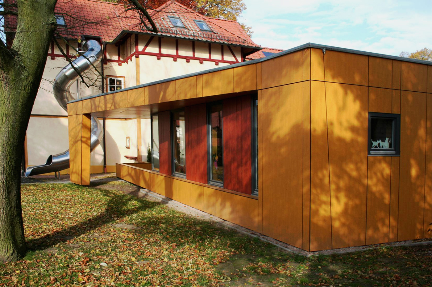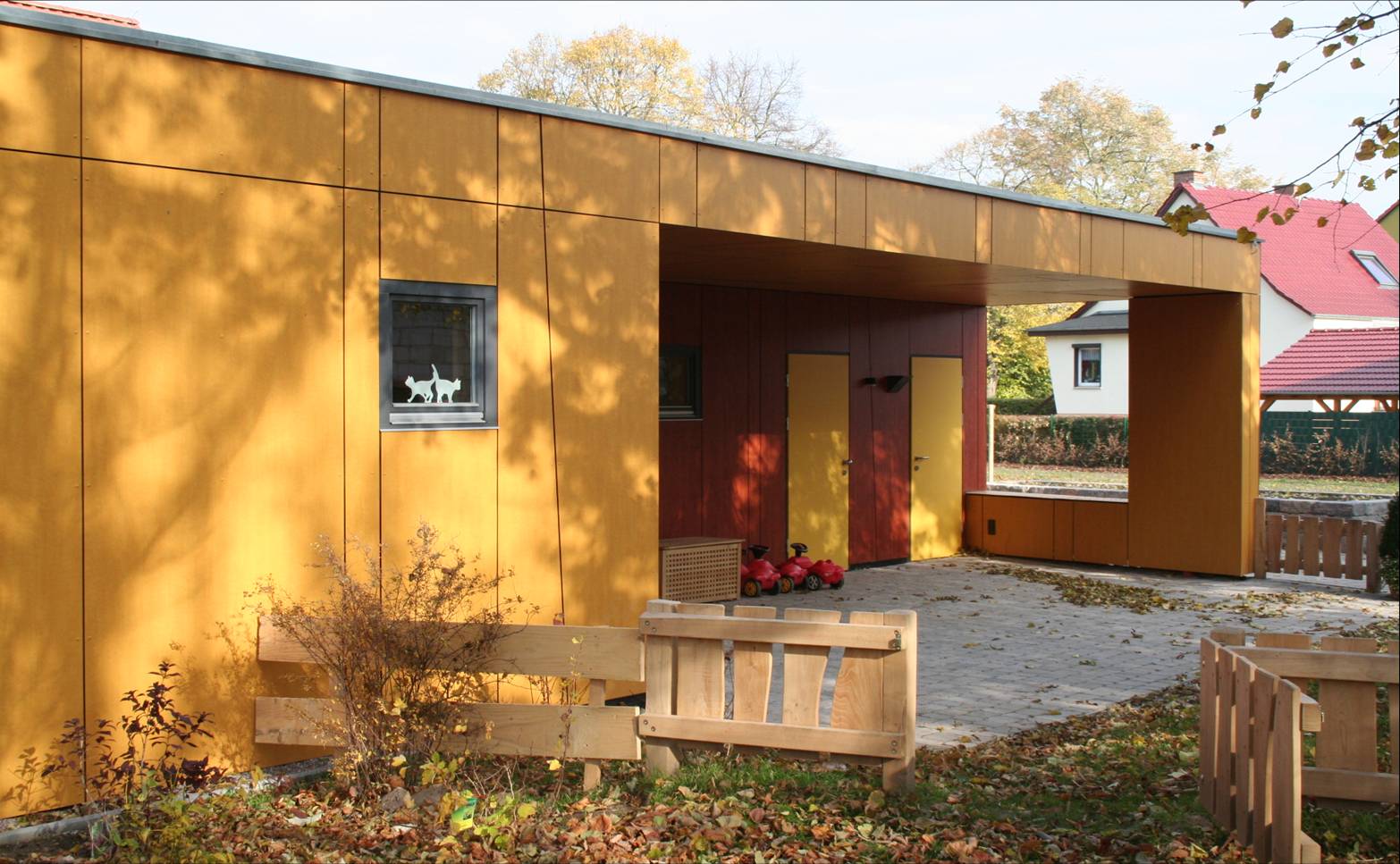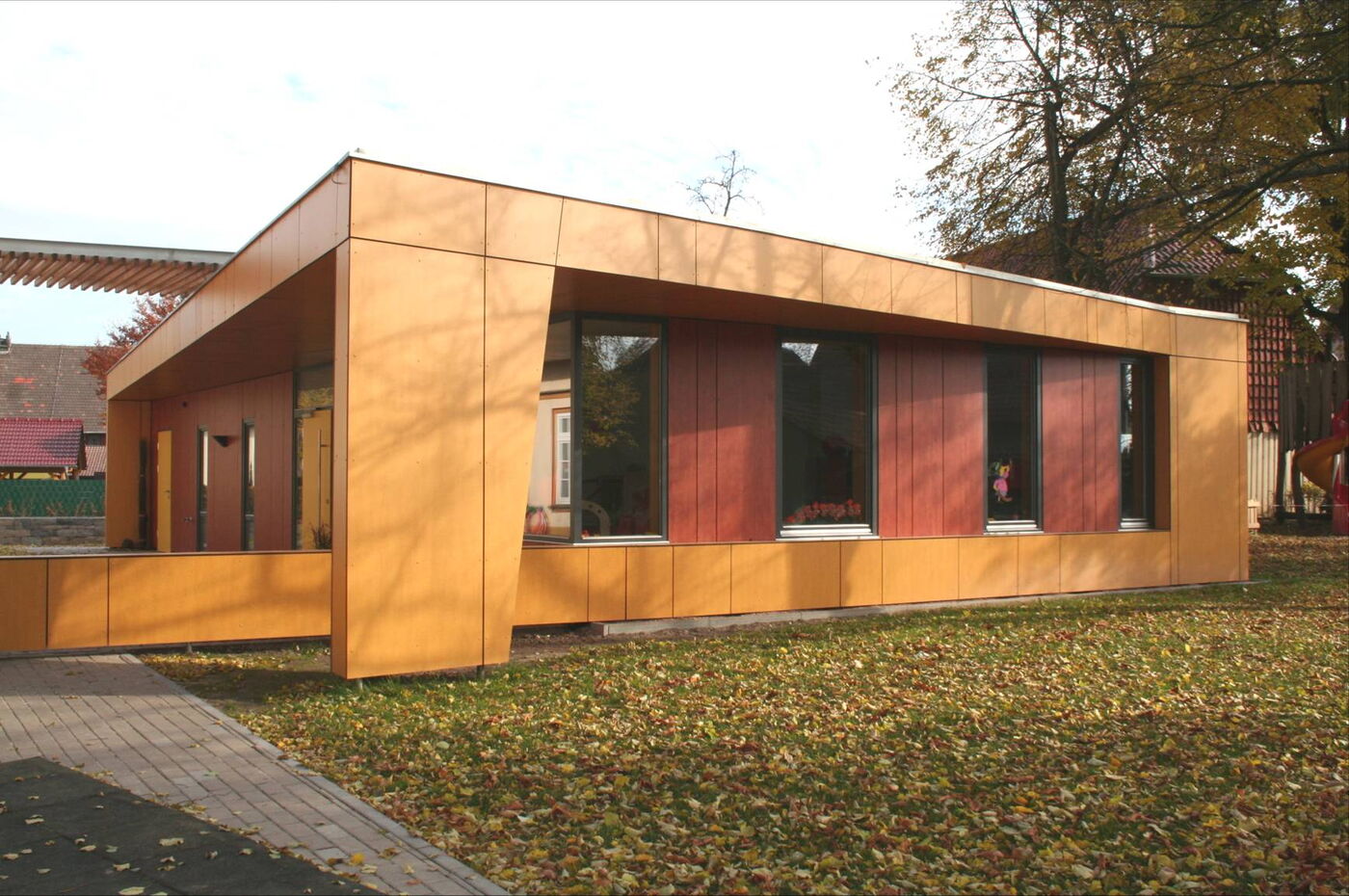 Grundgedanke unserer Konzeption war, ein Gebäude zu entwickeln, in der sich die von Fröbel entwickelte Pädagogik des „Freien Spiels“ entfalten und das Fühlen, die Motorik, die Phantasie und die Kreativität der Kinder gefördert werden kann.